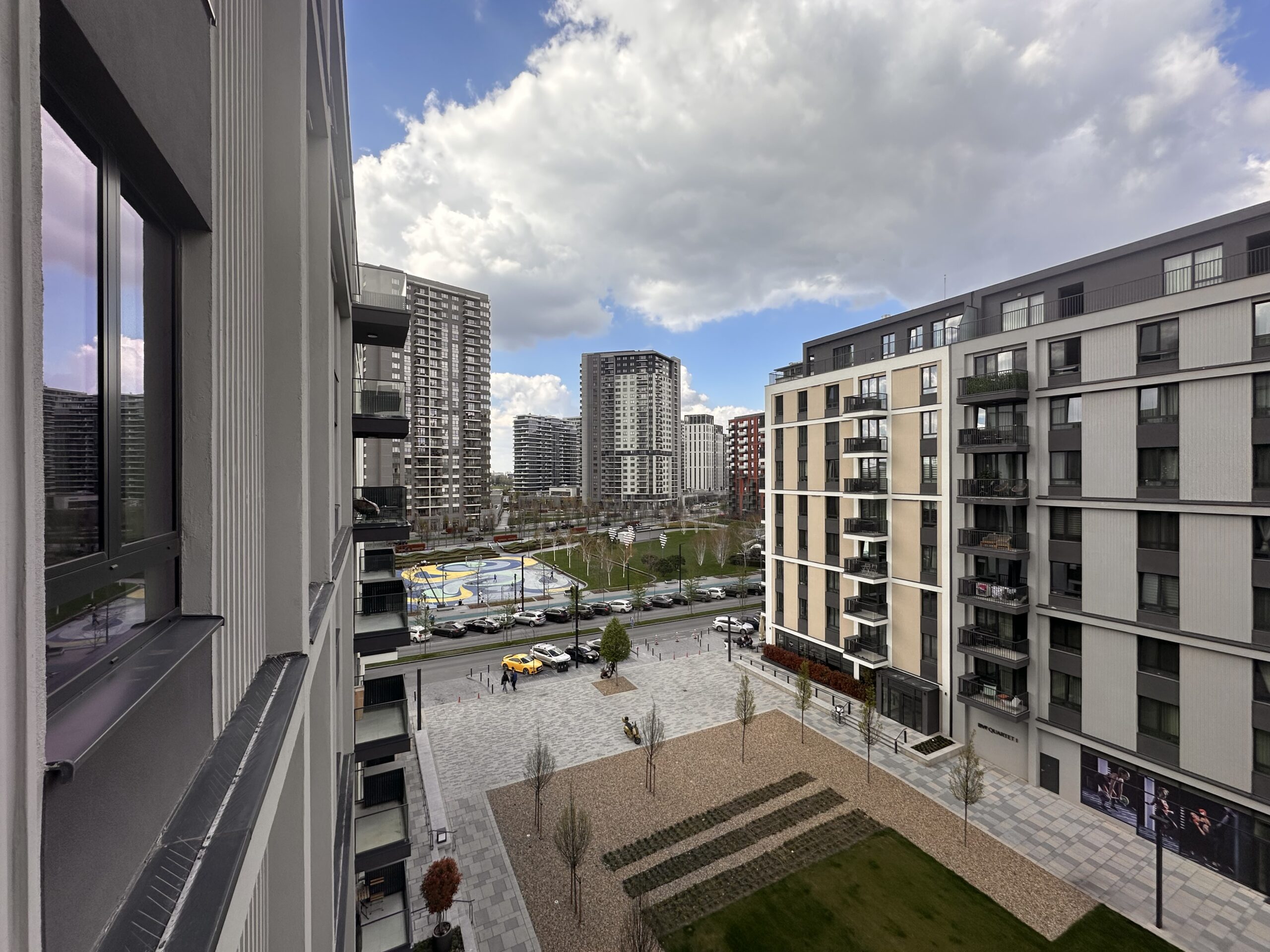 Pogled na park i otvoren prostor ispred zgrade pruža dodatni osjećaj privatnosti i mira, što je rjetkost u urbanim sredinama poput Beograda na vodi.