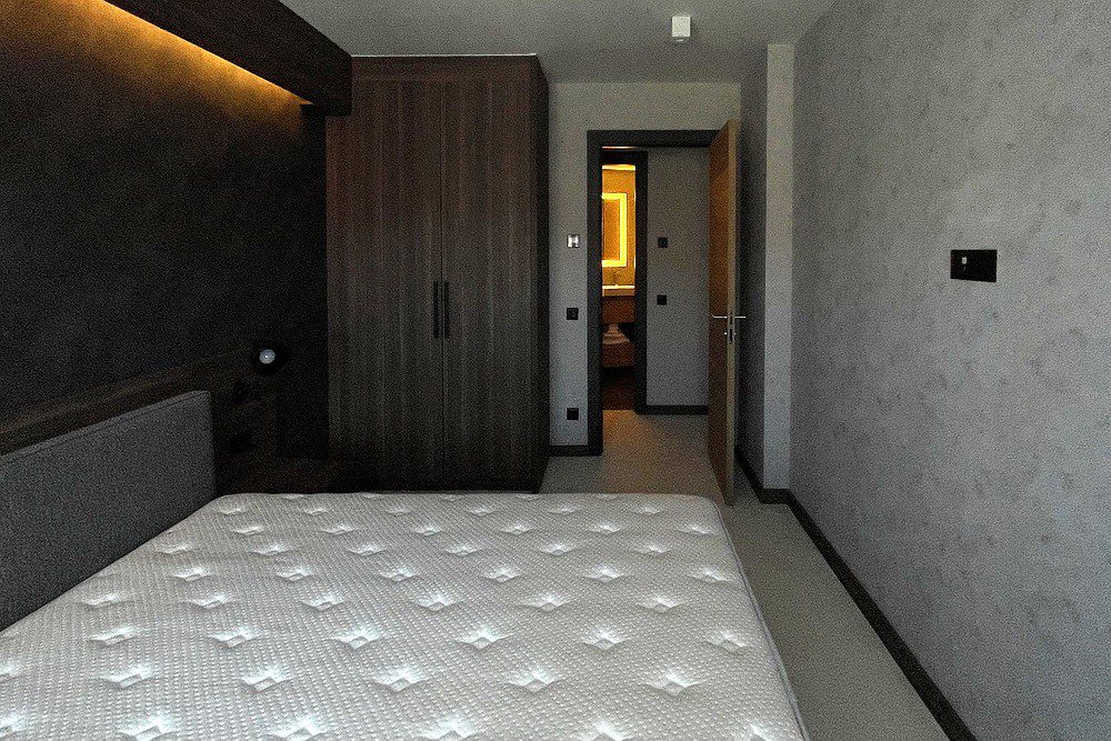 – Prvi nivo: Prostrana dnevna zona sa kuhinjom i trpezarijom, veliki prozori sa pogledom na planinske vrhove, jedna spavaća soba i luksuzno opremljeno kupatilo.