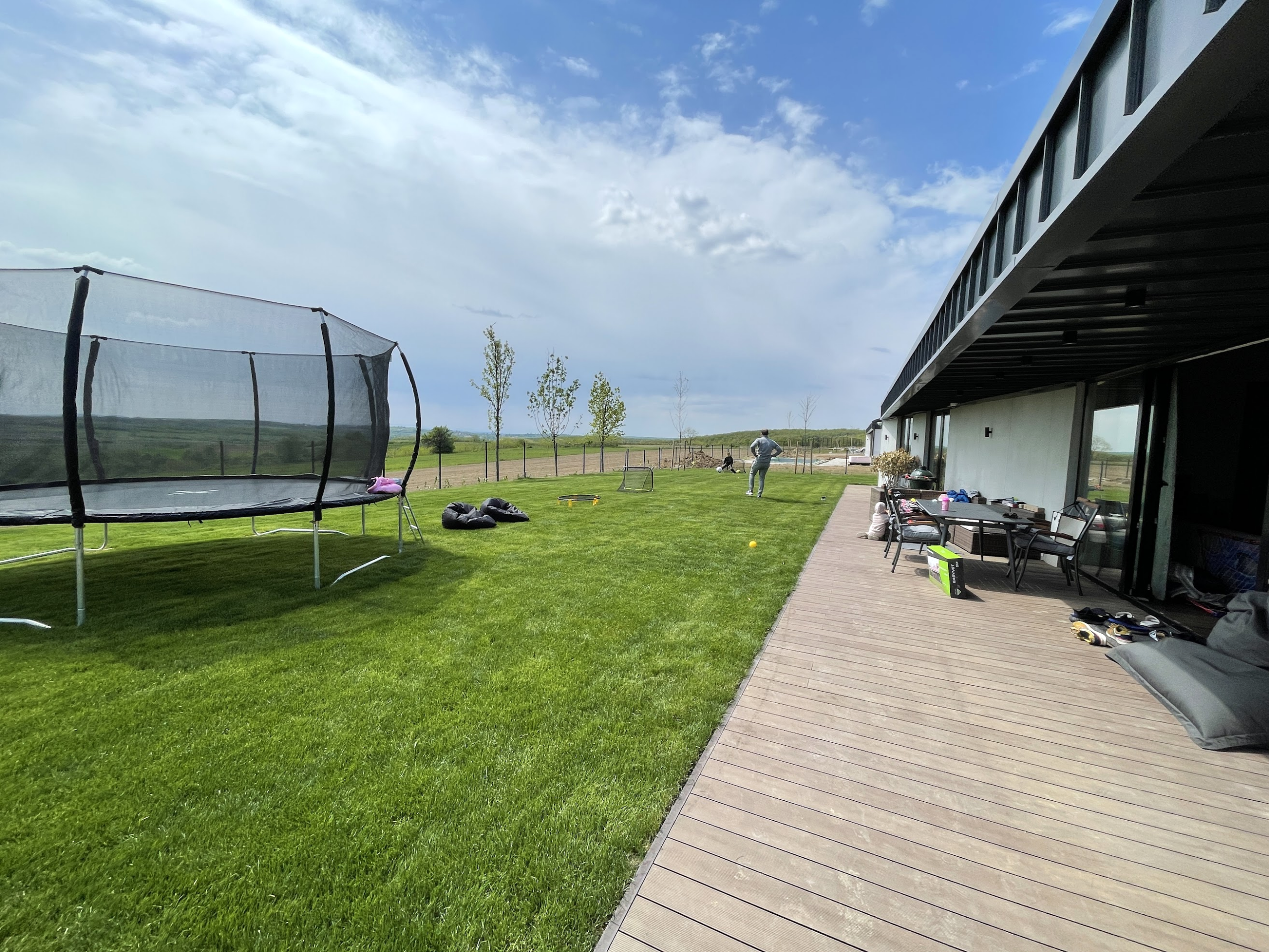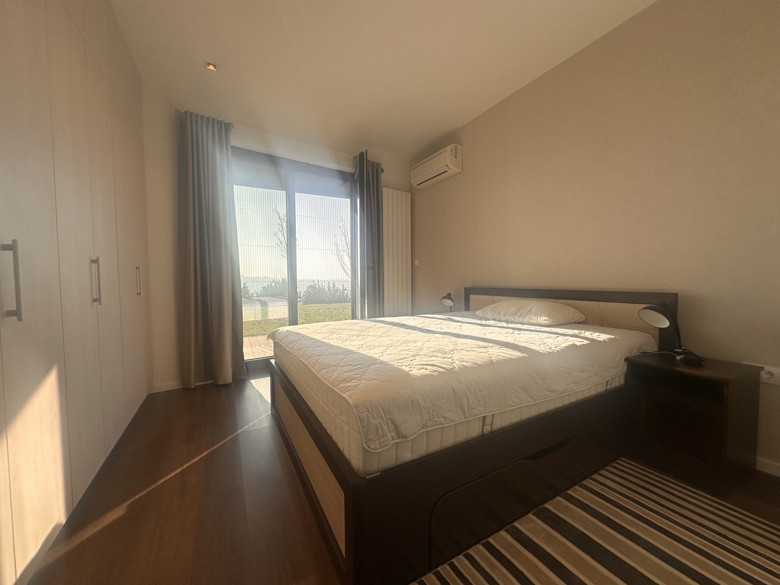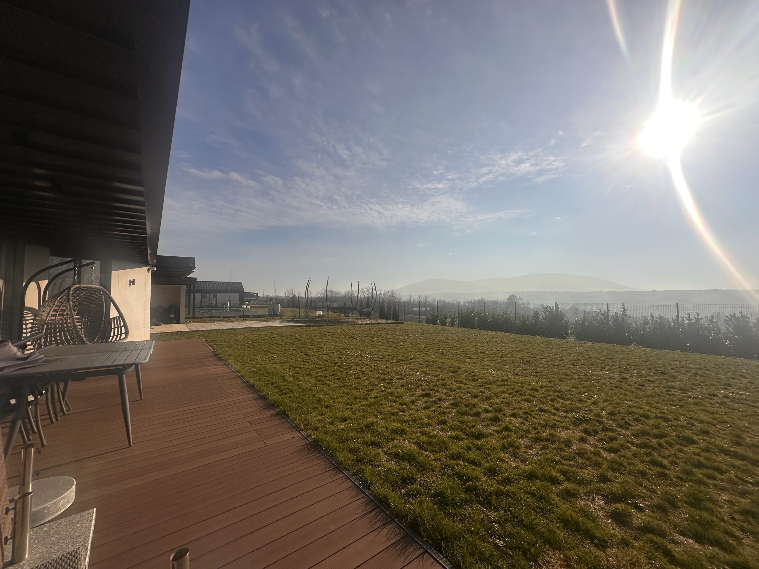 Prozori su velike staklene površine koje povezuju enterijer sa prelepim dvorištem, a terasa je prostrana i idealna za druženja i boravak napolju tokom cijele godine.