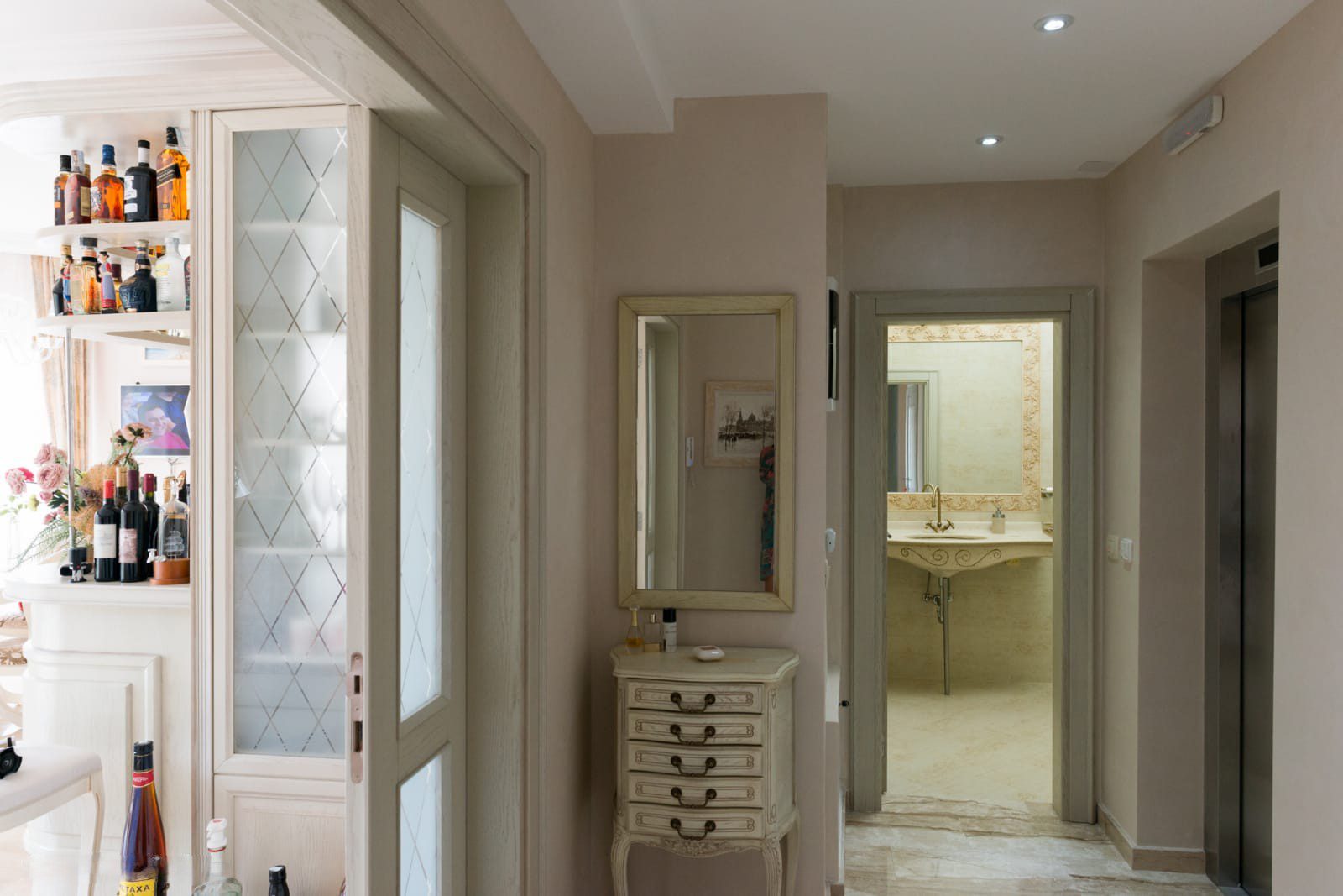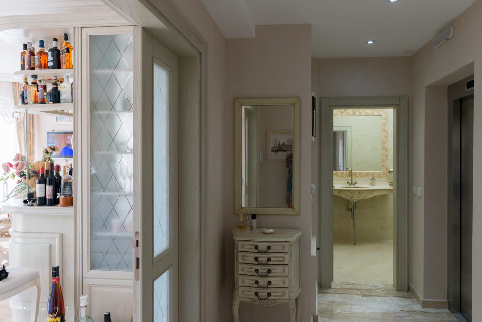 Vila se prostire na četiri nivoa povezana liftom kao i unutrašnjim stepeništem.