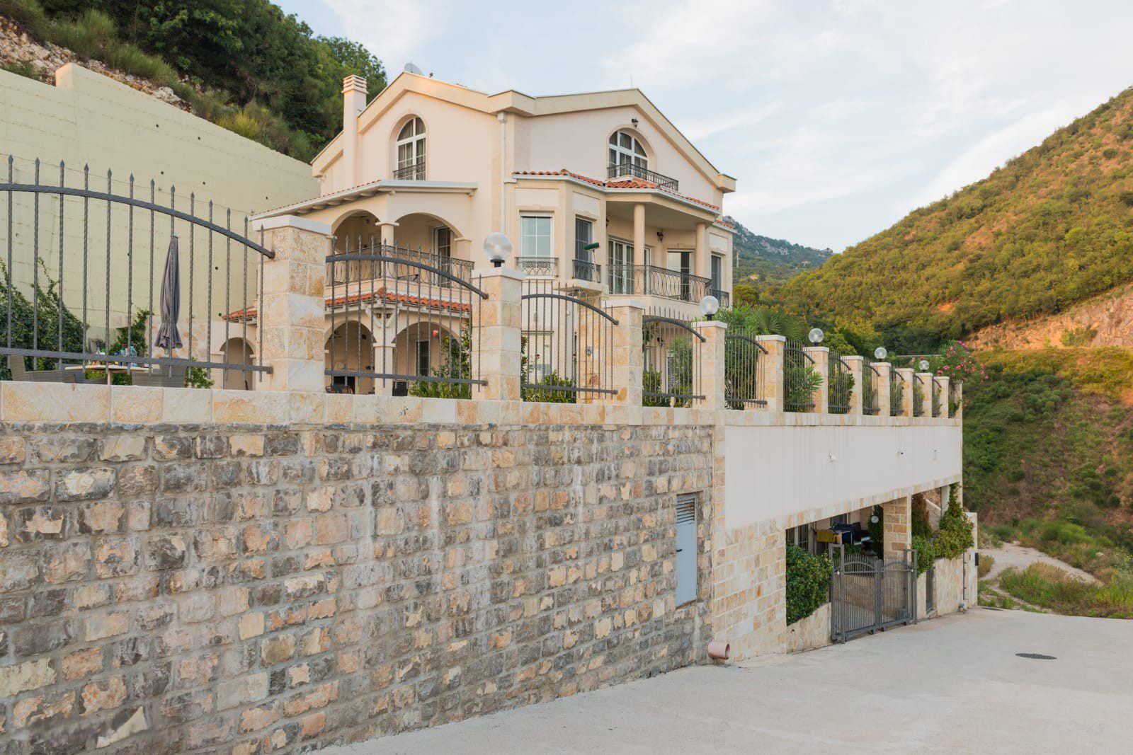 Podignuta je na placu površine 800m2, posjeduje veliko sređeno dvorište sa bazenom. Na placu su raznovrsne mediteranske biljke – magnolija, oleandar, palma kao i stabla masline, narandže, mandarine, limuna, kivija, grožđa…