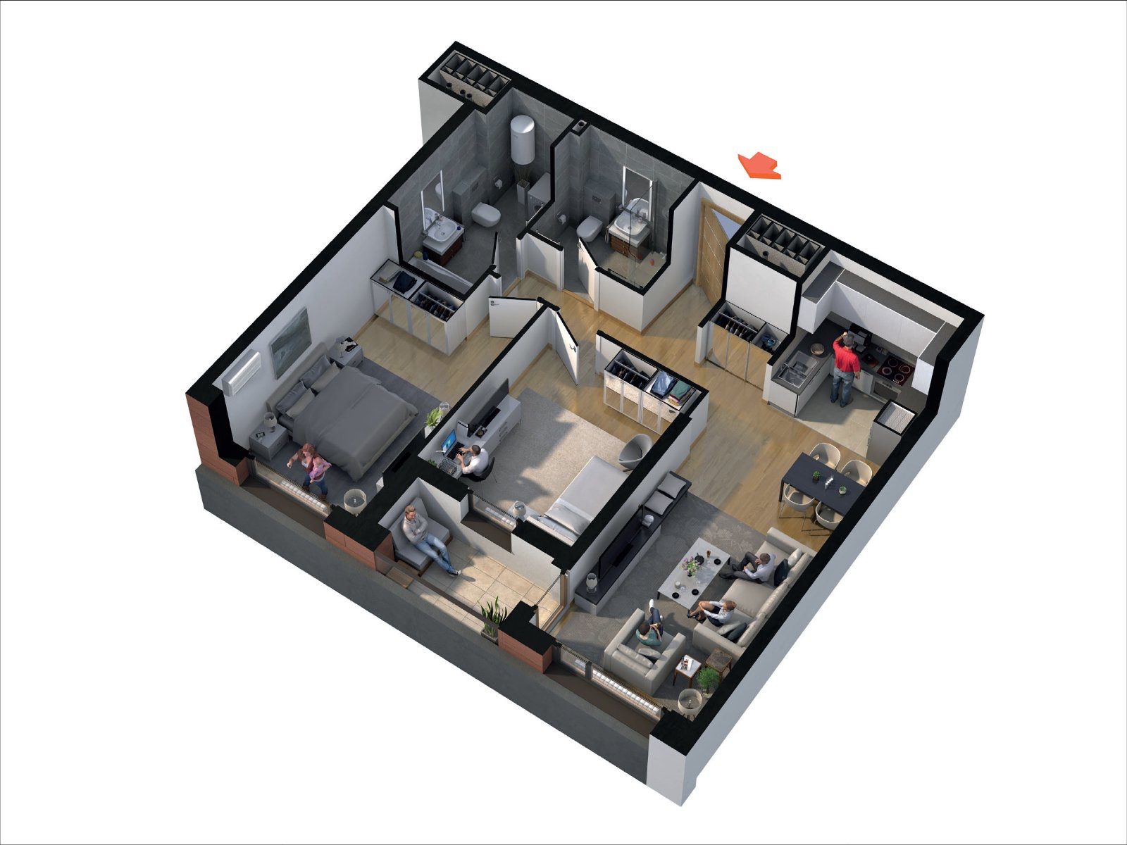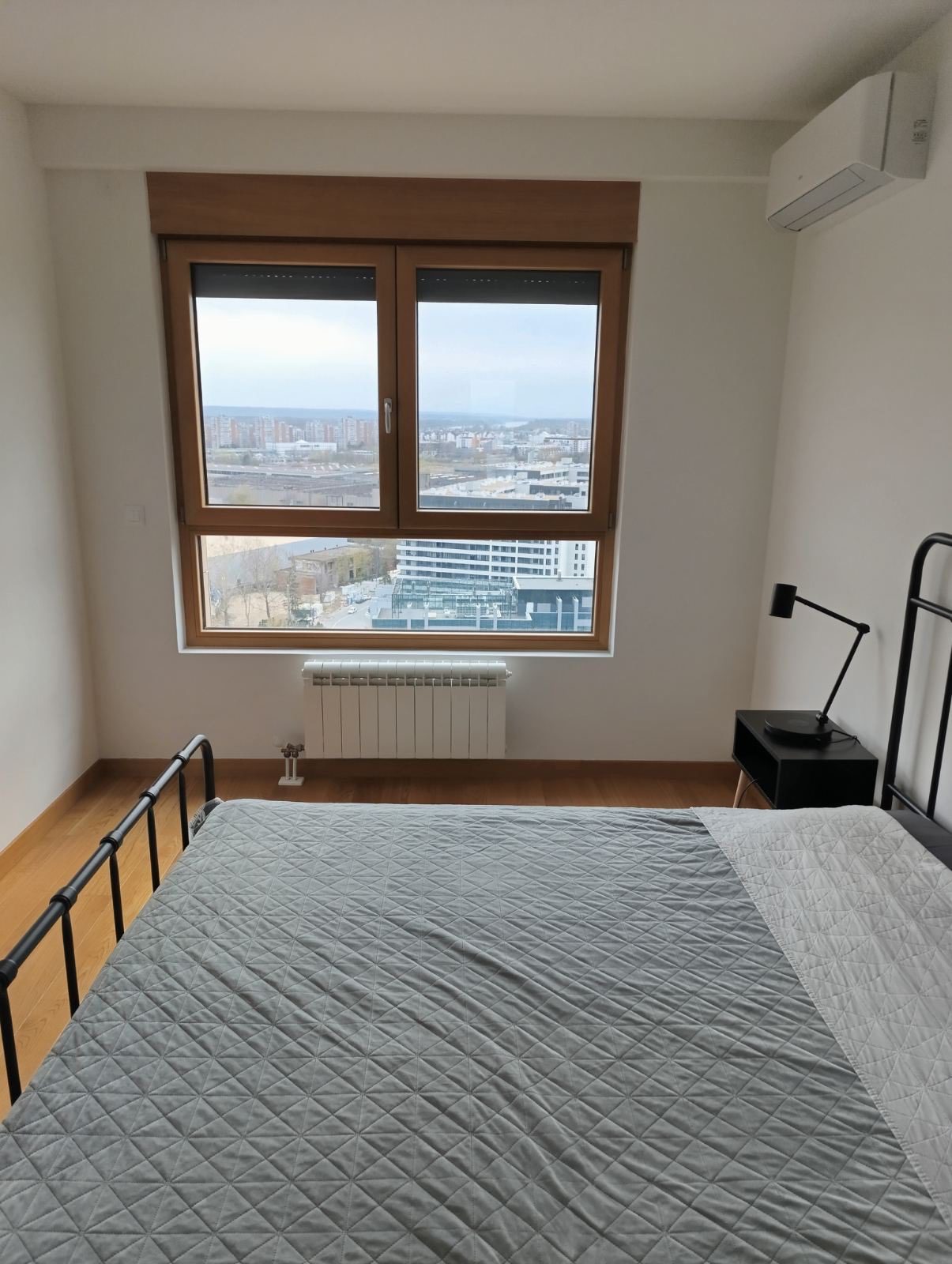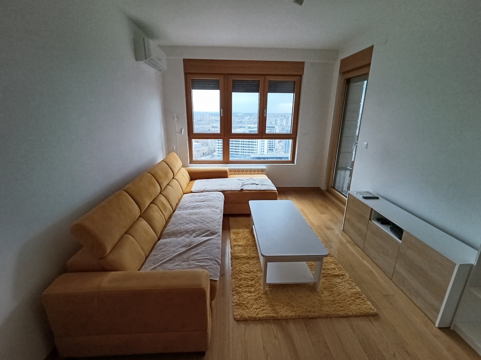 Stan koji nudimo je komforan, funkcionalnog rasporeda. Nalazi se na 18. spratu i pruža panoramski pogled na okolinu. Jugozapadno orjentisan, veoma svetao i osunčan. Sastoji se iz predsoblja, open space dnevnog boravka su kuhinjom i trpezarijskim delom, hodnika, dve spavaće sobe, dva kupatila i terase. jedna soba je master sa svojim kupatilom.