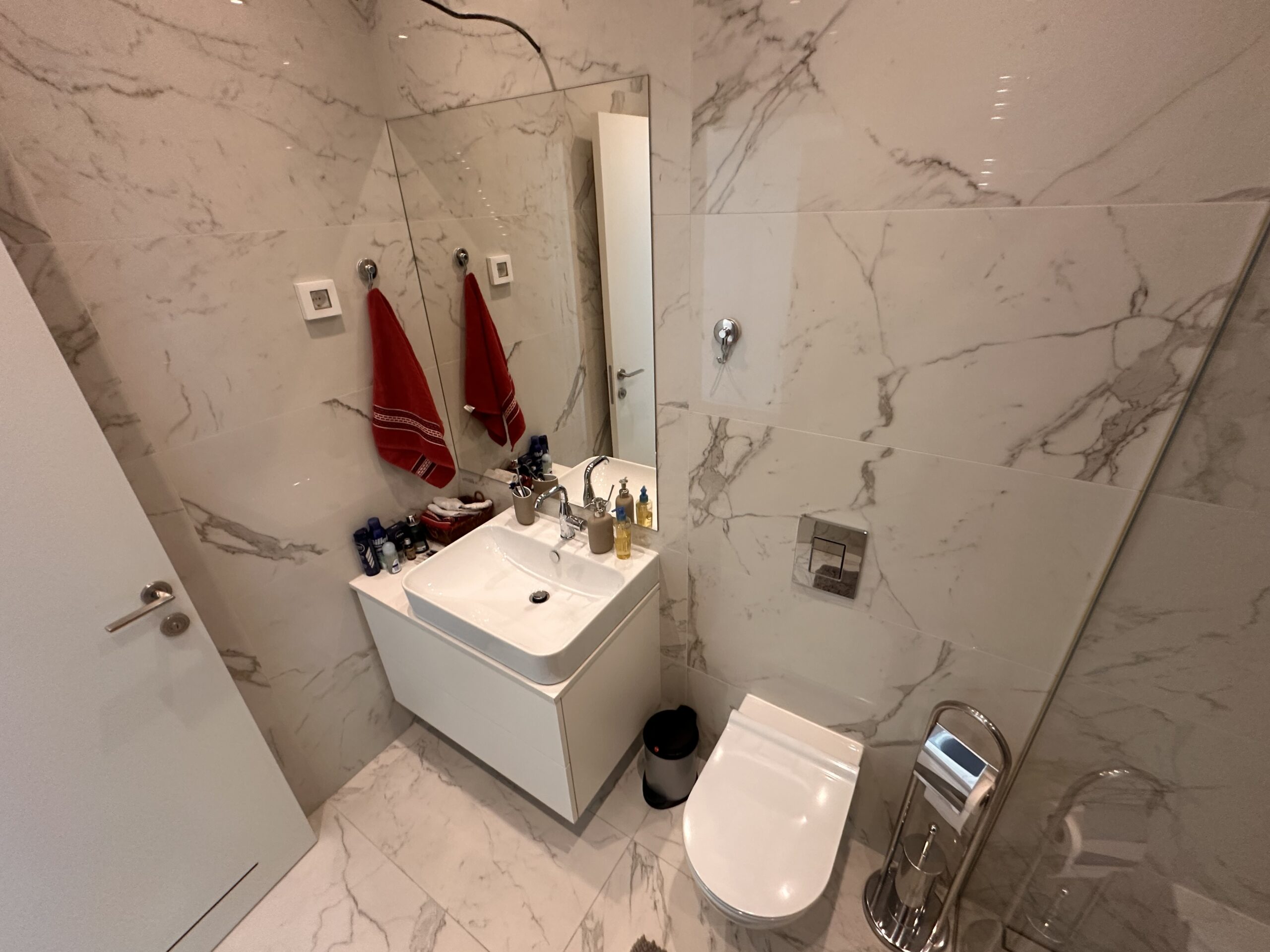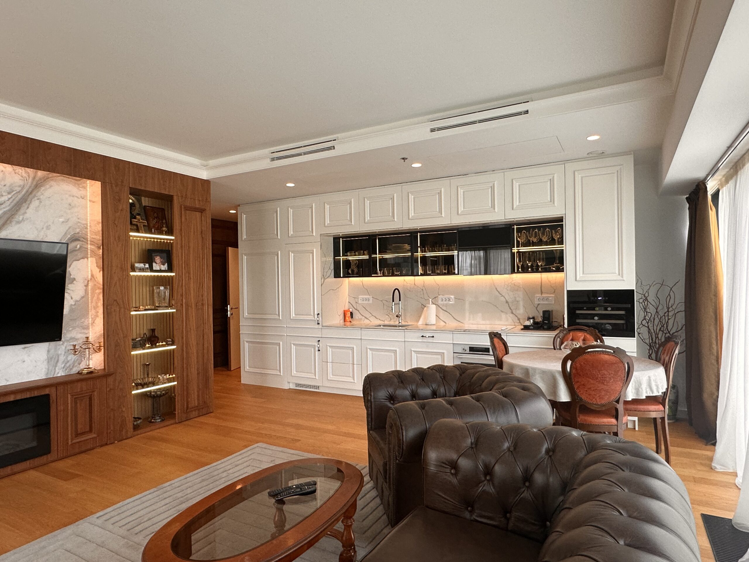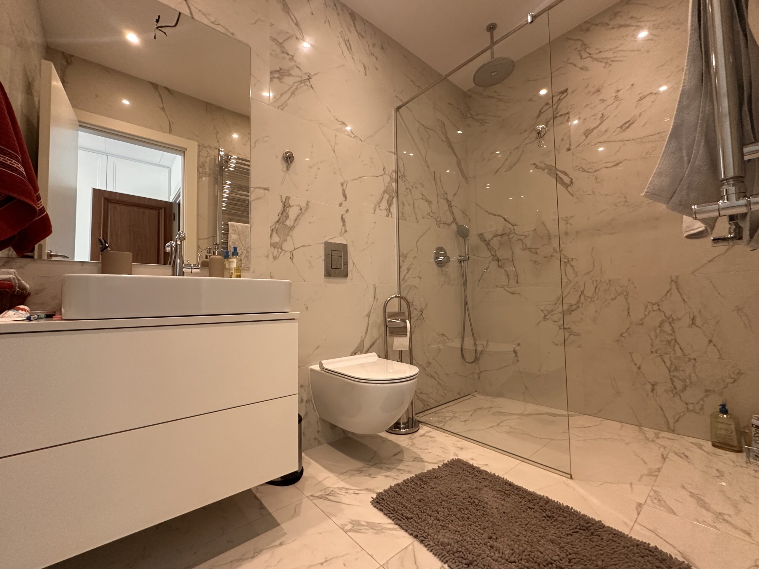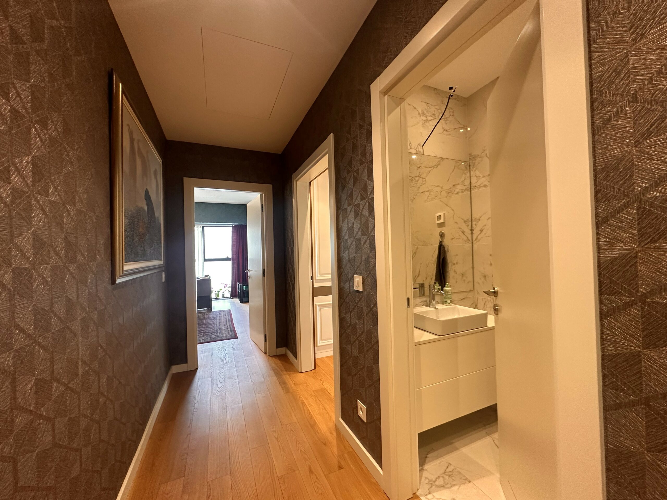 Stan je odličan, komforan, svetao i prozračan. Sastoji se iz predsoblja, open space dnevnog boravka sa kuhinjom i trpezarijskim prostorom, dvije spavaće sobe, dva kupatila, gostinskog toaleta i vešernice. Obe spavaće sobe imaju svoje kupatilo sa tuš kabinom.