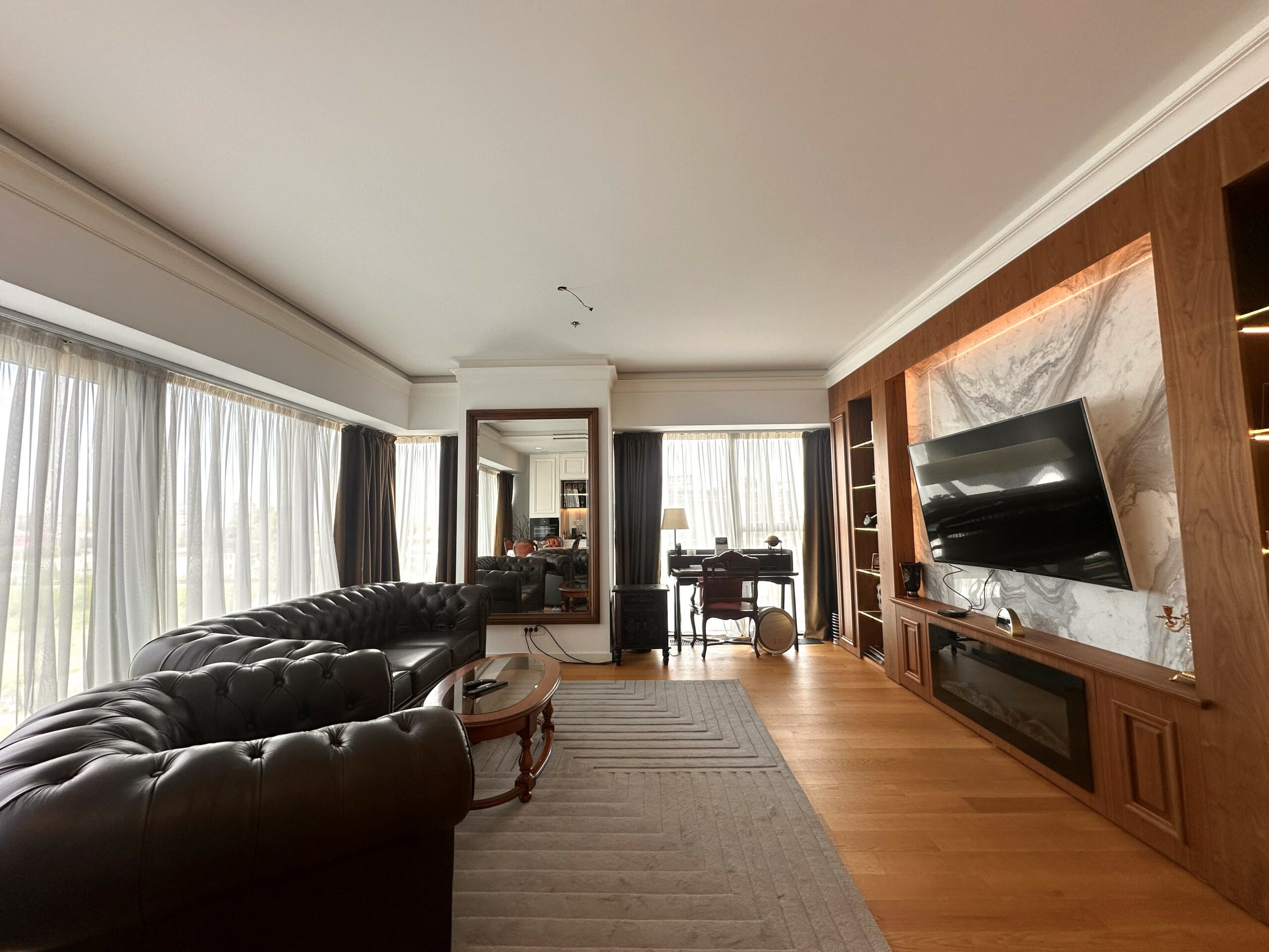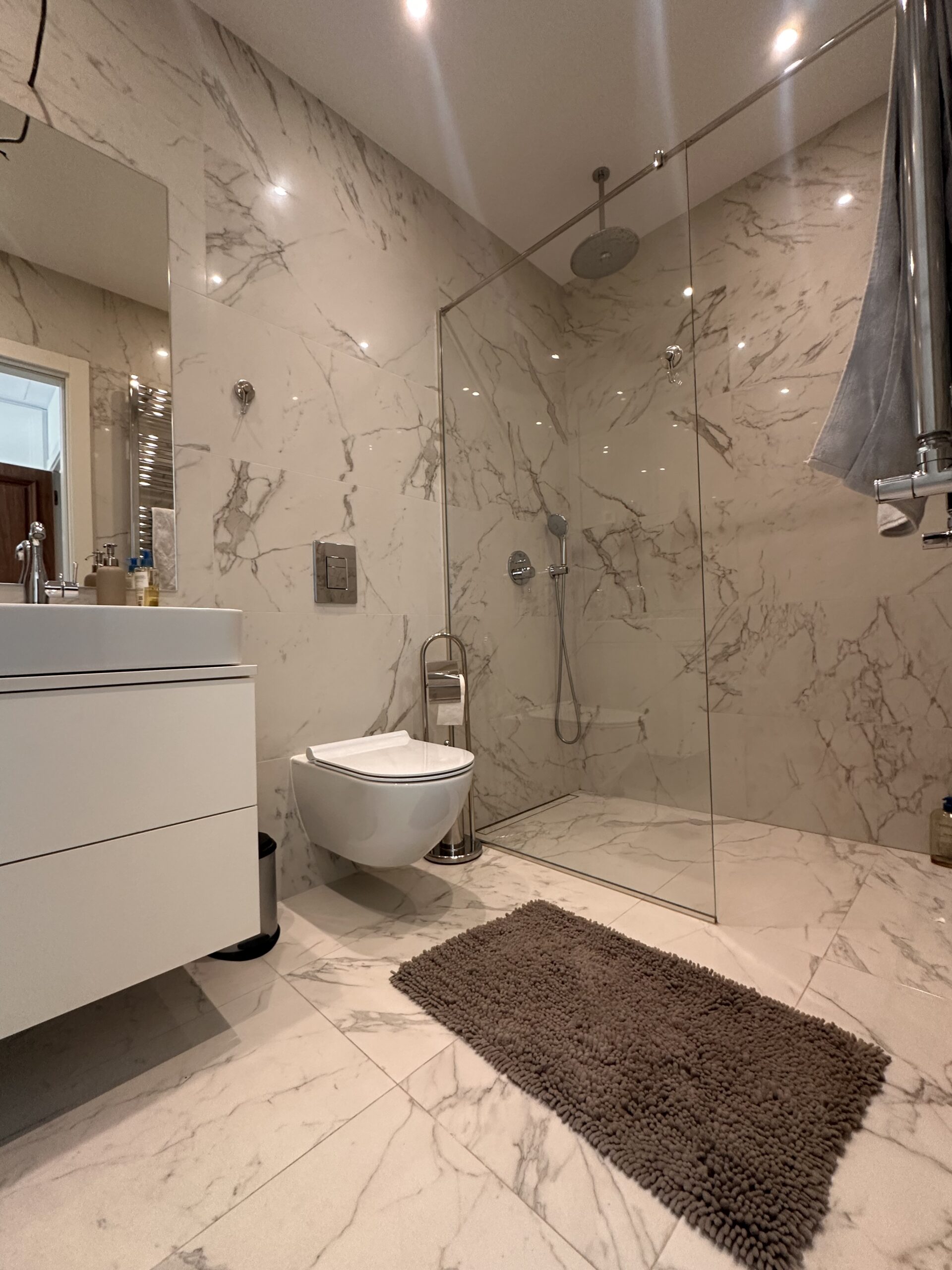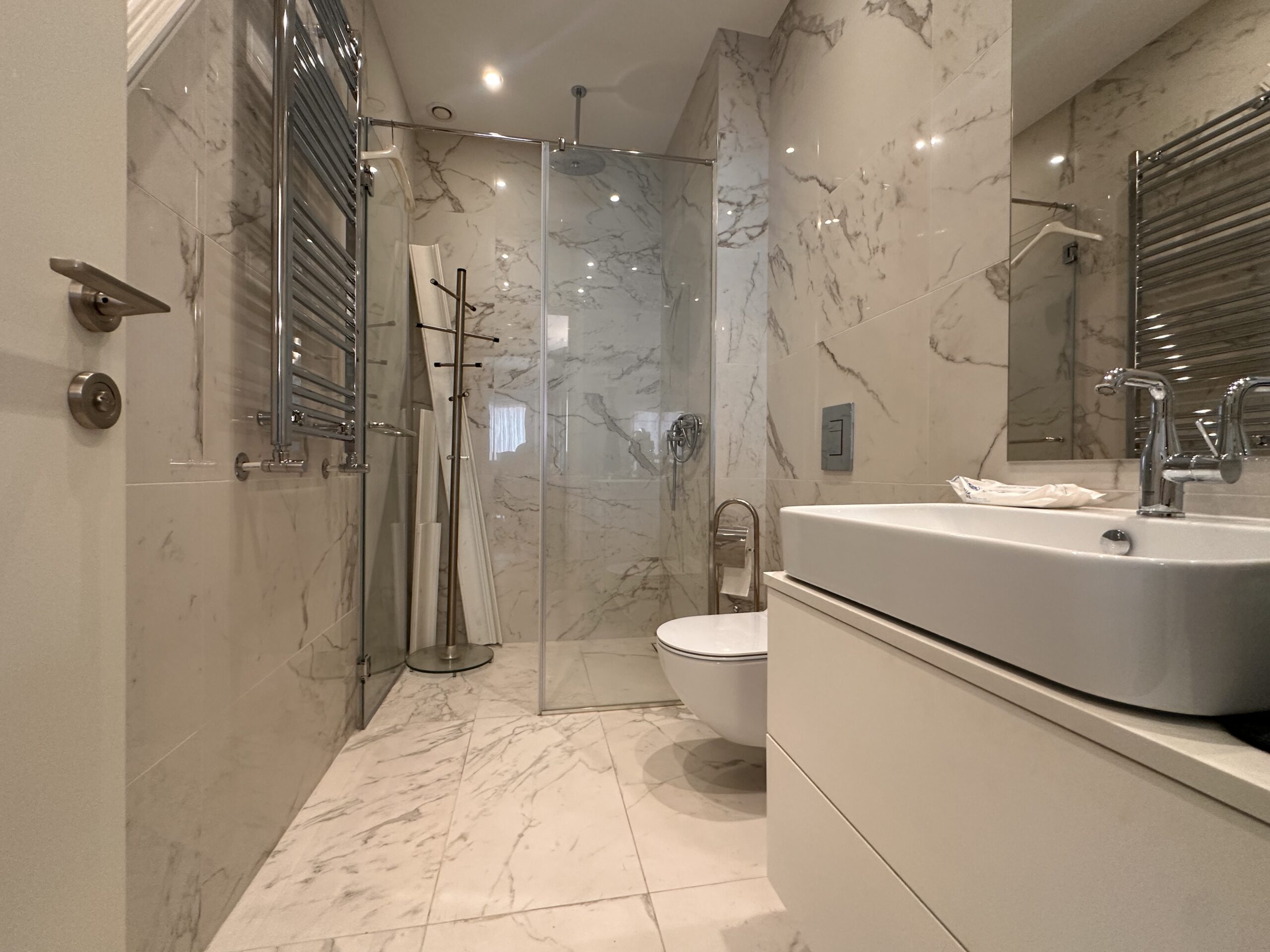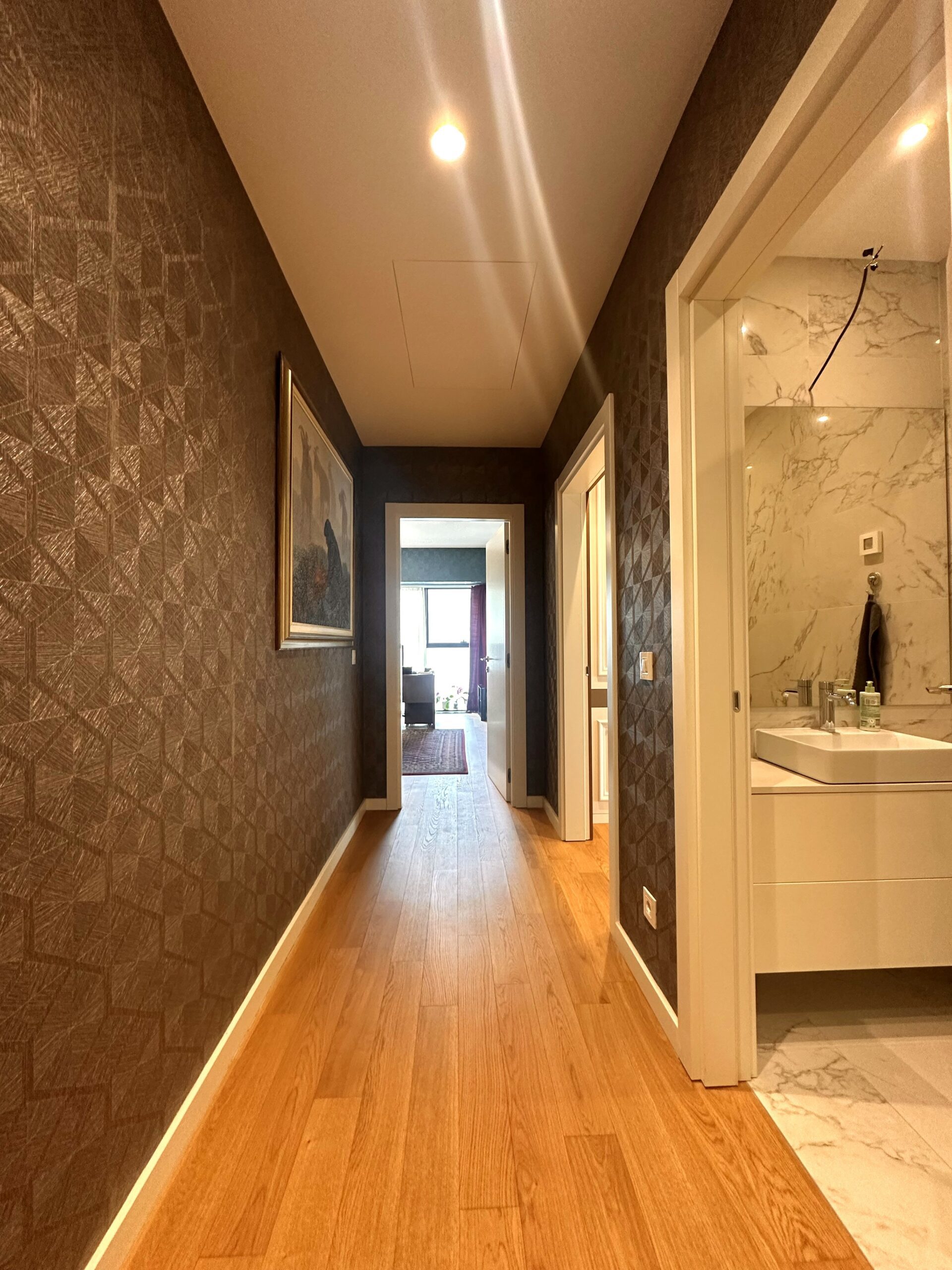 Stan je odličan, komforan, svetao i prozračan. Sastoji se iz predsoblja, open space dnevnog boravka sa kuhinjom i trpezarijskim prostorom, dvije spavaće sobe, dva kupatila, gostinskog toaleta i vešernice. Obe spavaće sobe imaju svoje kupatilo sa tuš kabinom.